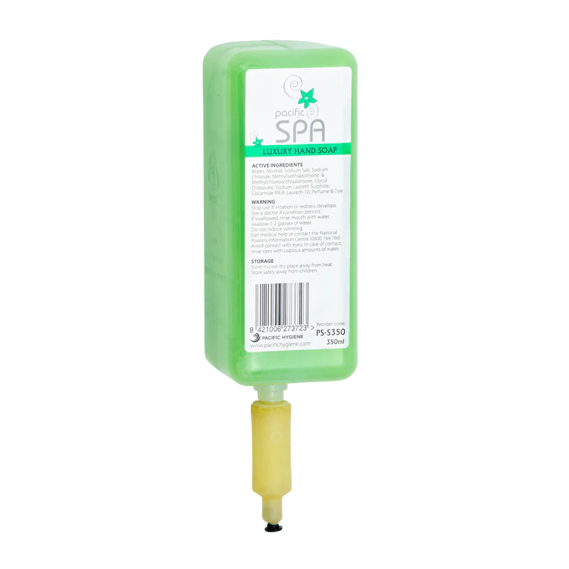 Pacific Spa, a luxury hand soap with an earthy fragrance, formulated to provide a spa-like sensation with each use. These 350ml cartridges are designed for use with the Pacific Spa Dispenser, available in Black, White and Silver. Ideal for hotels, motels, B&Bs and gyms.